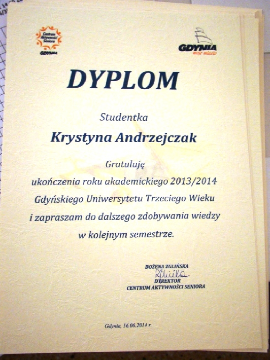 Aby powiększyć zdjęcie wystarczy kliknąć na miniaturkę.Filia GUTW na WitominiePo ostatnich, otwartych zajęciach z TRENINGU PAMIĘCI odbyło się uroczyste zakończenie roku akademickiego.