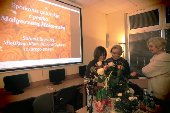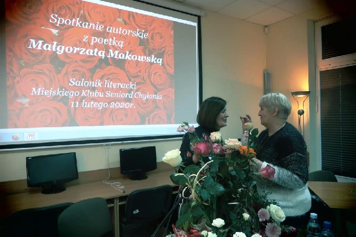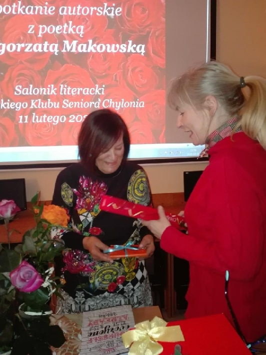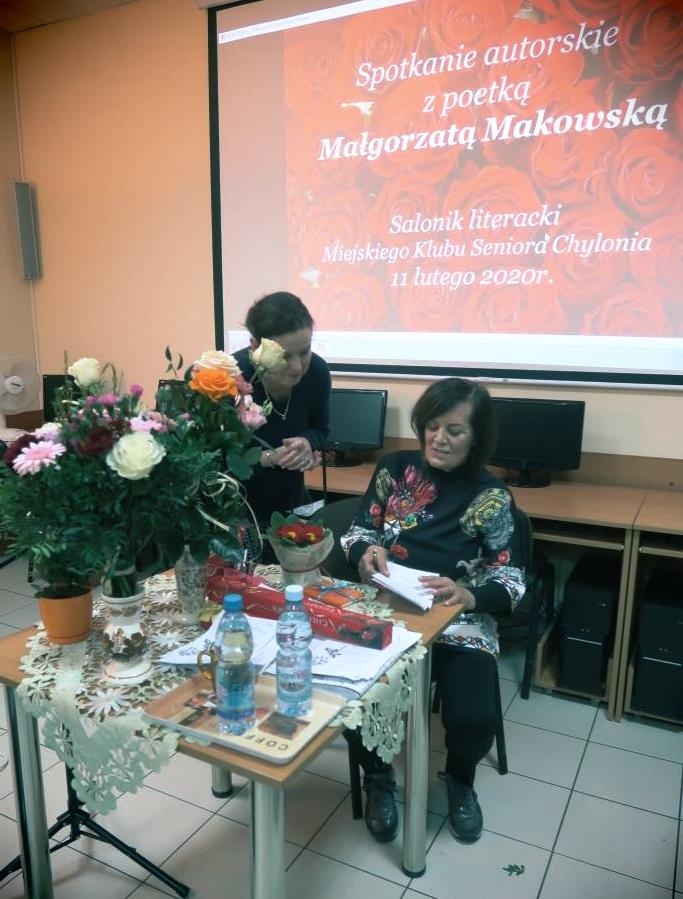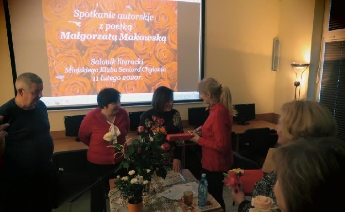 Aby powiększyć zdjęcie wystarczy kliknąć na miniaturkę.Spotkanie autorskie11 lutego 2020r. salonik literacki Miejskiego Klubu Seniora Chylonia gościł poetkę - Panią Małgorzatę Makowską, która zaprezentowała wiązankę wzruszających wierszy.
