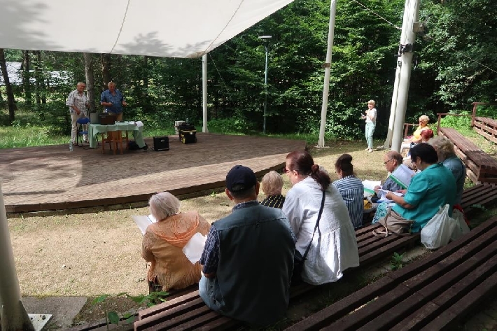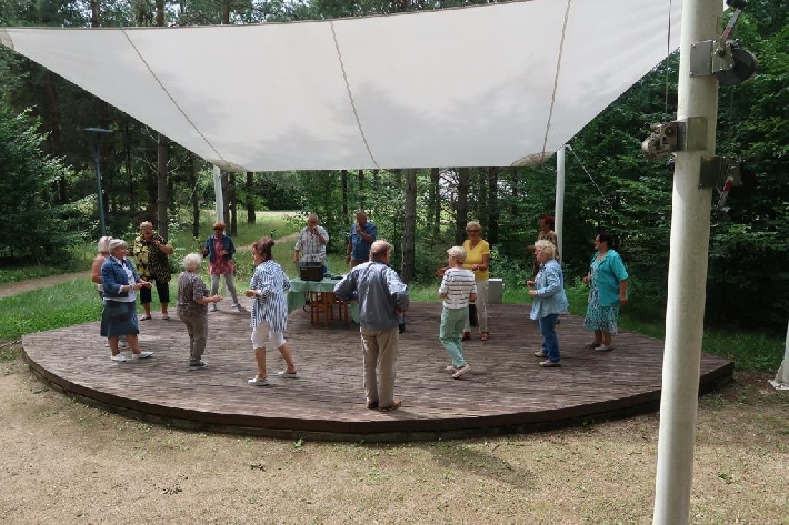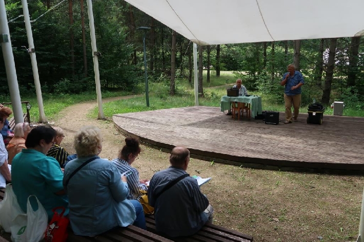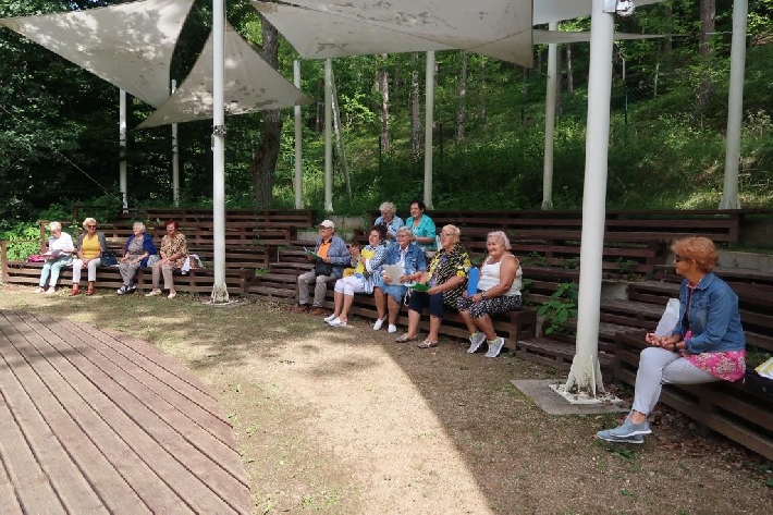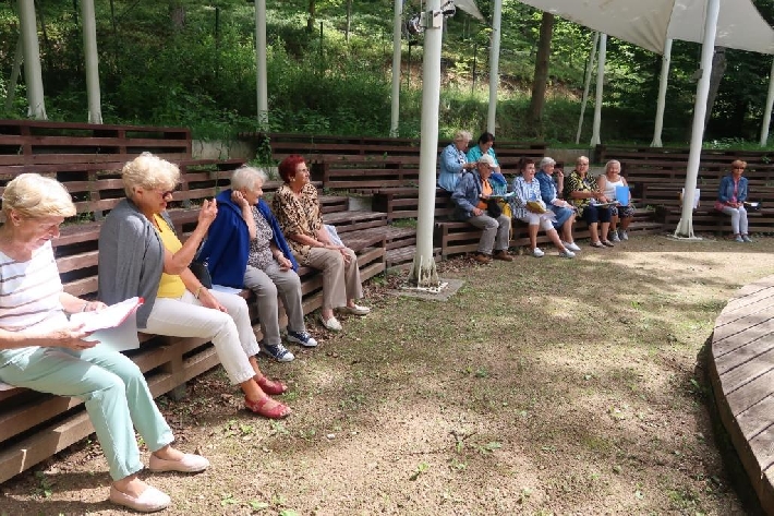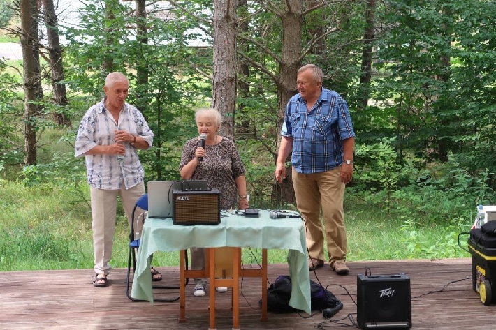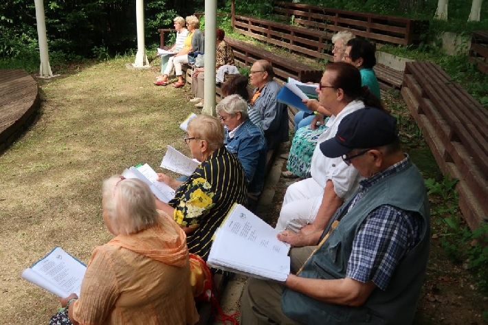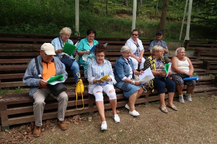 Seniorzy z Miejskiego Klubu Seniora Chylonia uwielbiają śpiew i piękno przyrody, dlatego klubowe karaoke, prowadzone przez wspaniałych Panów Zygmunta i Janusza, odbyło się w Leśnym Ogrodzie Botanicznym "Marszewo". 12.08.2021 r.