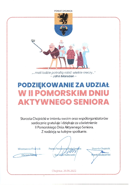W niedzielę 26 czerwca 2022 r. w Fosie Miejskiej w Chojnicach bawili się seniorzy z całego województwa pomorskiego, a gwiazdą wieczoru był Krzysztof Daukszewicz. Gdyńskie Centrum Aktywności Seniora reprezentował zespół "Perełki".