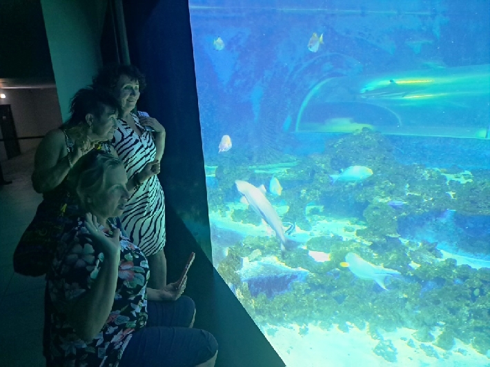 Seniorzy z MKS Orłowo wraz z animatorką klubu - Barbarą Kwiatkowską wybrali się do Aquaparku w Redzie. Nie skorzystali jednak z basenów i wodnych zjeżdżalni; zwiedzili Papugarnię, GadoLand i wielkie akwarium z rekinami :) 09.07.2023 r.