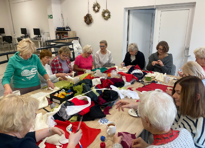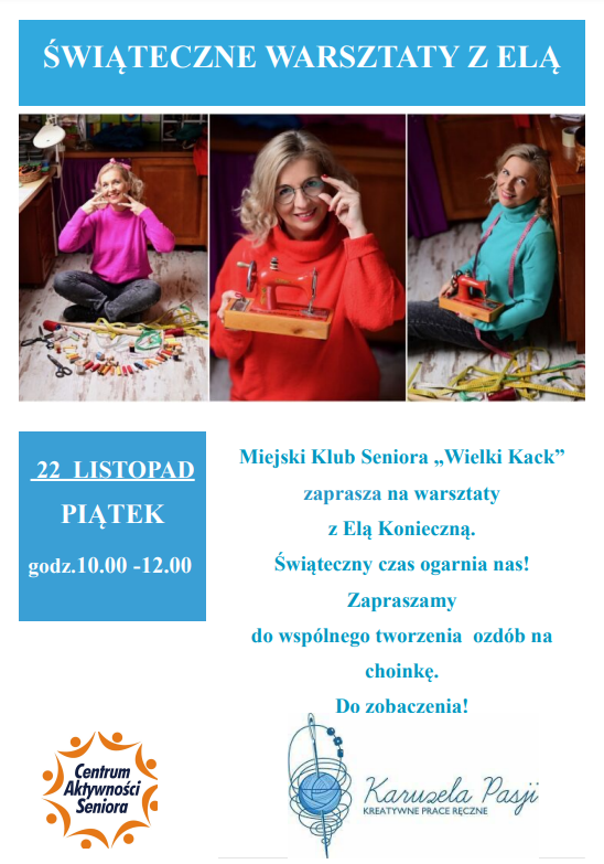 Miejski Klub Seniora "Wielki Kack" zaprosił seniorów na warsztaty z Elą Konieczną z Karuzeli Pasji. Spotkanie było bardzo twórcze - powstały piękne ozdoby na choinkę!