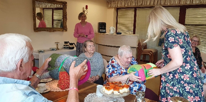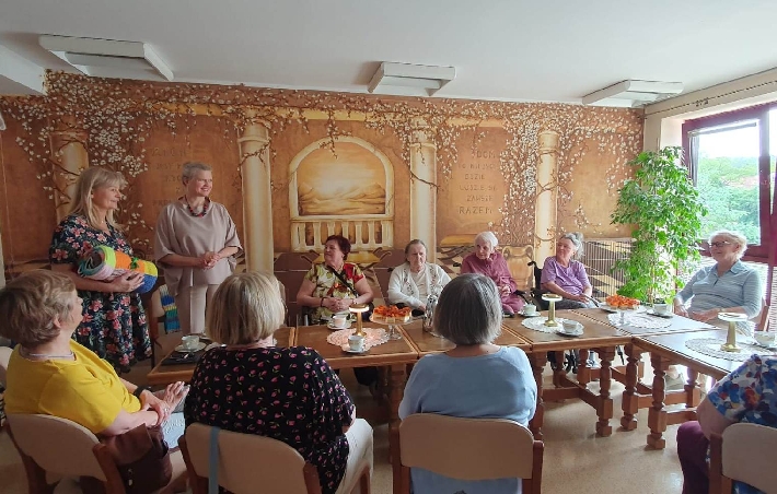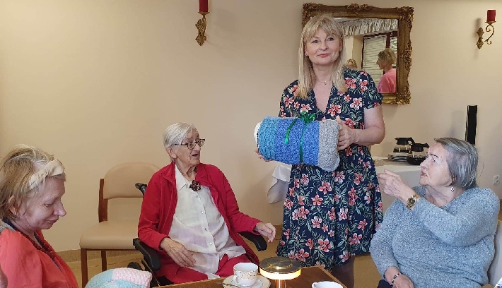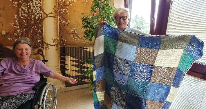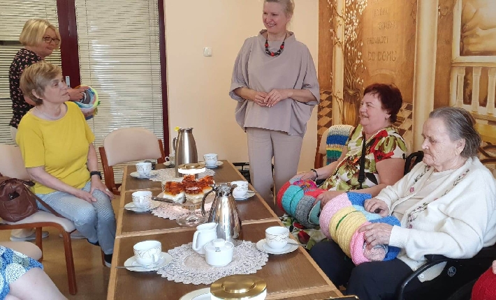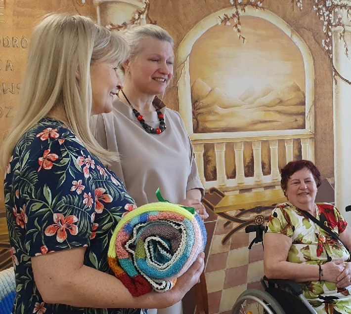 2 czerwca 2025 roku odbyło się wyjątkowe spotkanie w Domu Pomocy Społecznej przy ul. Pawiej 31 w Gdyni. Uczestniczki zajęć "Dzierganie z sercem" z Centrum Aktywności Seniora własnoręcznie wykonały piękne, kolorowe koce, które z radością przekazały Seniorom z DPS.