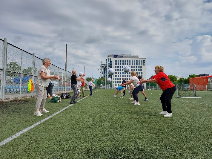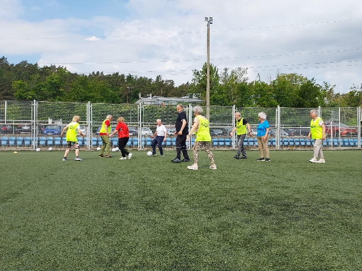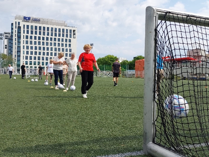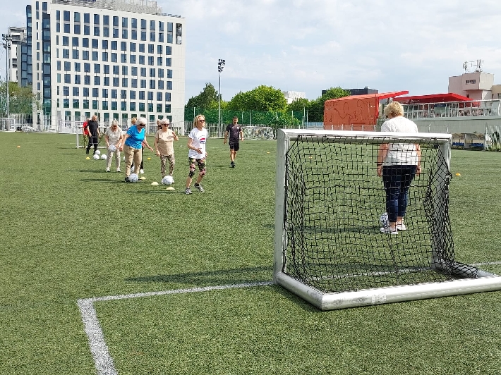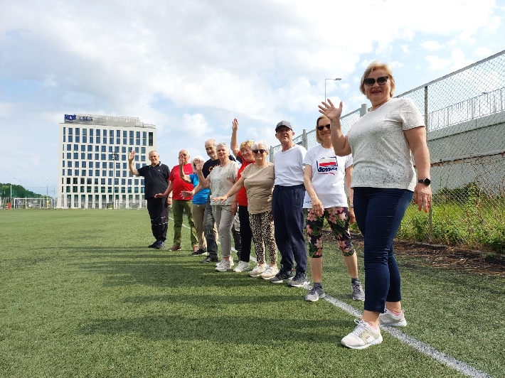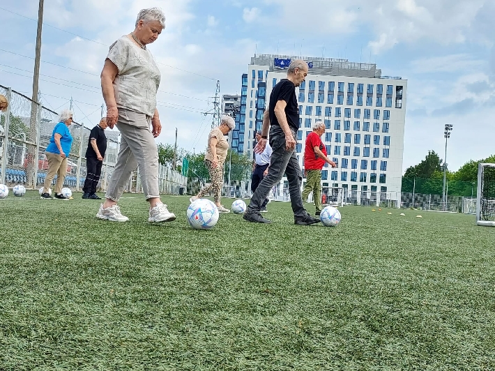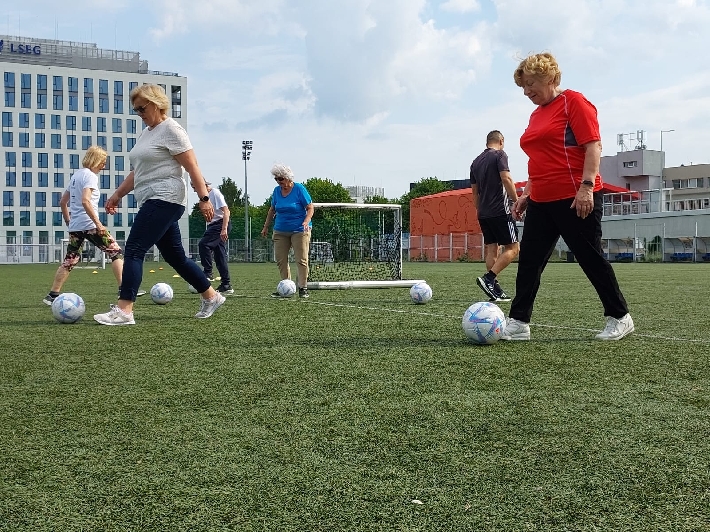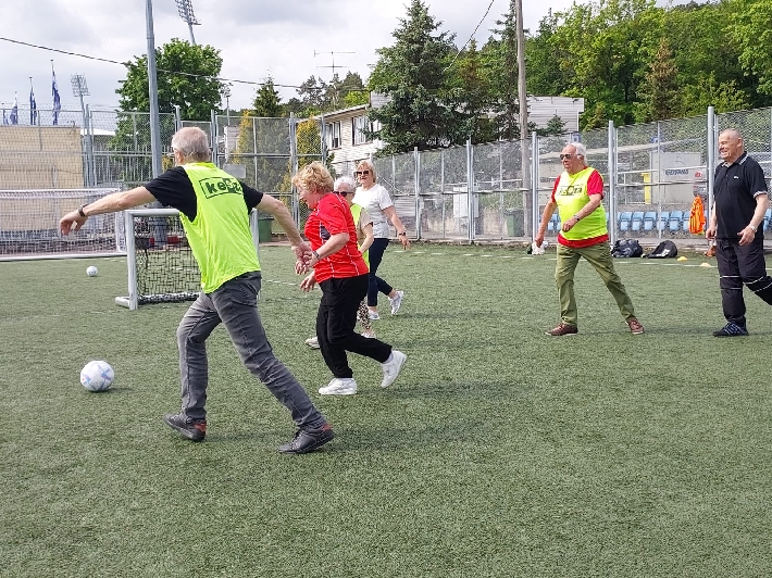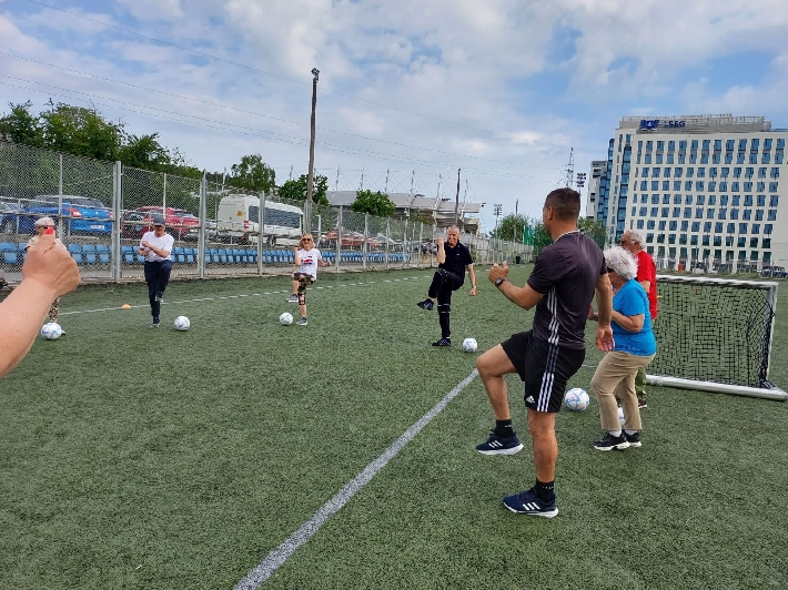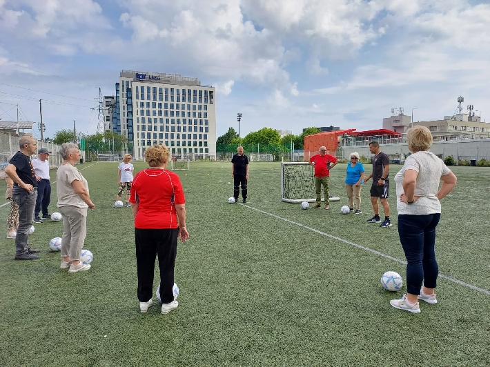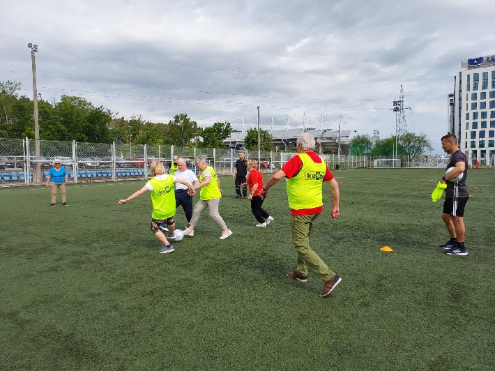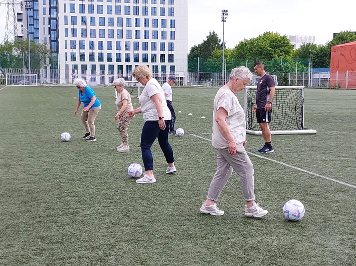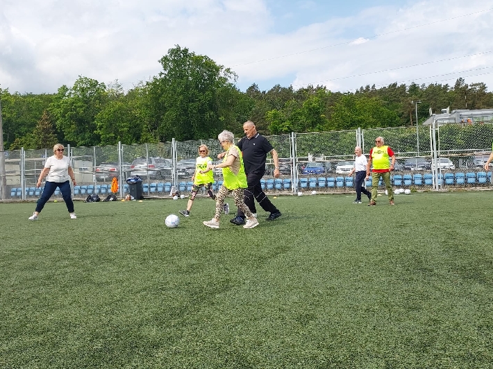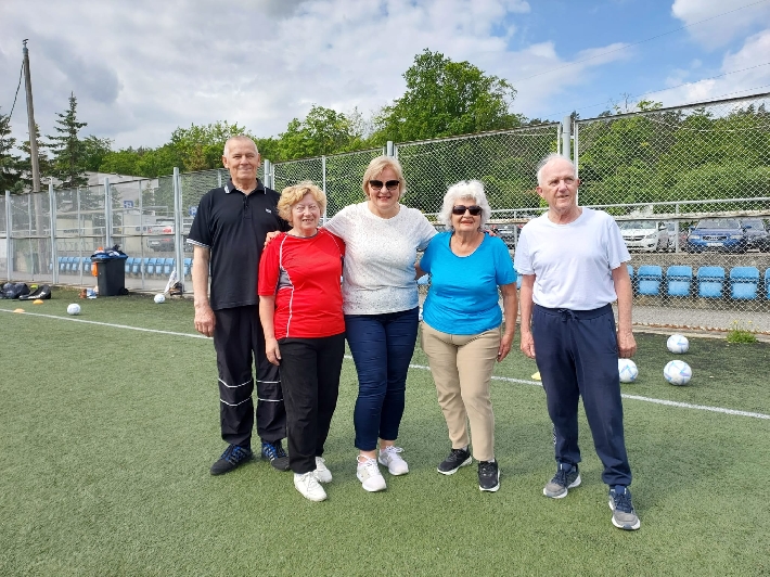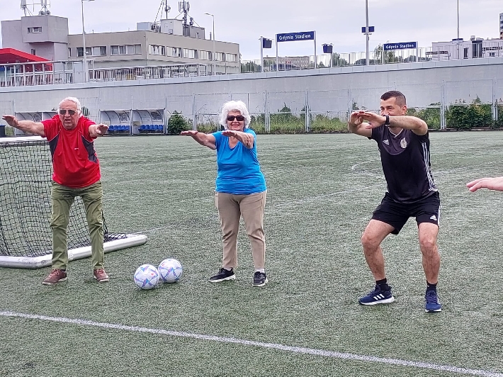W poniedziałek, 3 czerwca 2025 r., na boisku za halą lekkoatletyczną przy ul. Olimpijskiej 5 w Gdyni odbył się kolejny trening walking football dla seniorów. Zajęcia poprowadził trener Łukasz Kowalski, dbając o odpowiednią rozgrzewkę i dobrą zabawę uczestników.