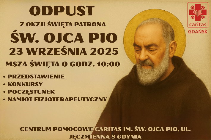 23 września 2025 r. w Centrum Pomocowym Caritas im. św. o. Pio w Gdyni świętowaliśmy wspomnienie św. Ojca Pio. W uroczystości uczestniczyła Bożena Zglińska - dyrektor CAS w Gdyni wraz z seniorami, którzy wnieśli wiele radości do wspólnego świętowania.