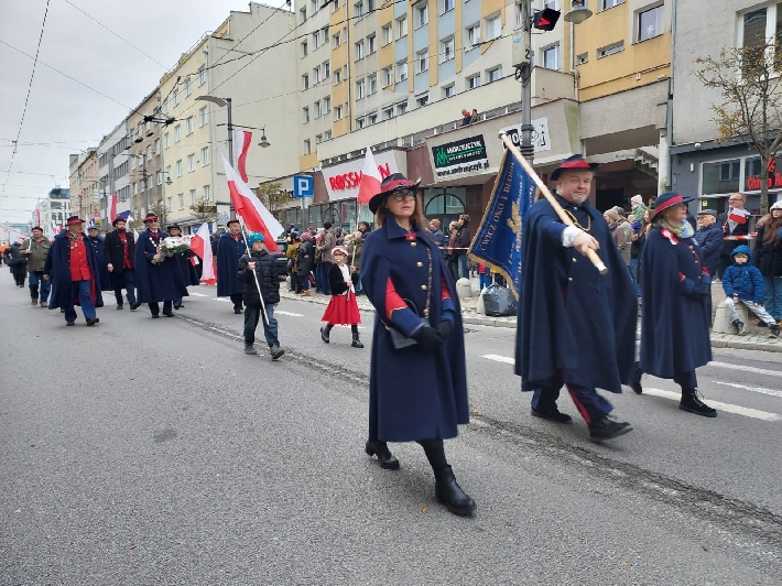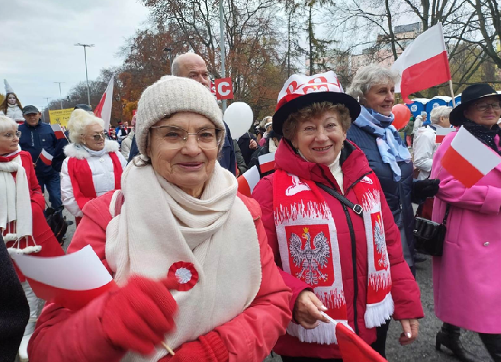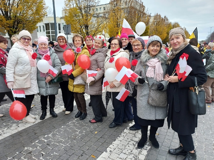 W samo południe, sprzed Urzędu Miasta, wyruszyła barwna Gdyńska Parada Niepodległości. Jak co roku, wzięli w niej udział licznie mieszkanki i mieszkańcy Gdyni - w tym nasi aktywni seniorzy, którzy z dumą i uśmiechem świętowali odzyskanie niepodległości.