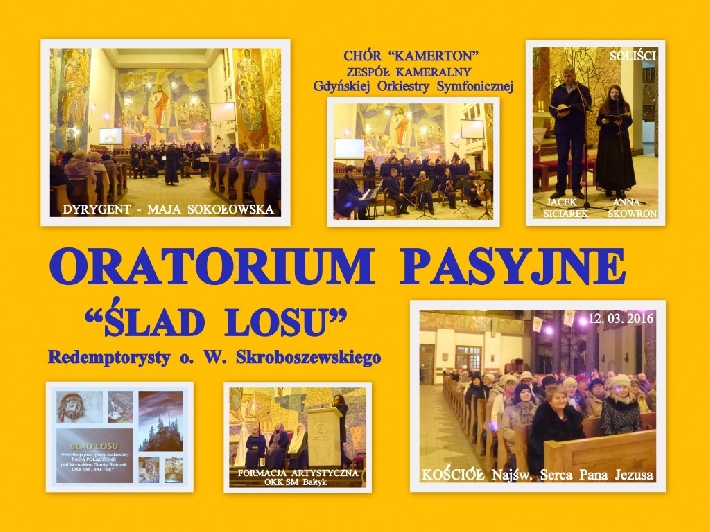 12 marca 2016 r. w kościele Najświętszego Serca Pana Jezusa odbyło się Oratorium Pasyjne ŚLAD LOSU redemptorysty o. W. Skroboszewskiego w wykonaniu Chóru Kamerton z udziałem muzyków Gdyńskiej Orkiestry Symfonicznej i solistów.